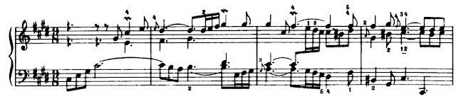 used in the 30 variation of The Goldberg Variations, the Quodlibet.III - Allegro (Presto 2) - A short movement in A-A-B-B structure that has the violins play pizzicato with the left hand on open strings. It is a restless piece that ends with little resolution. Some have commented that this might represent an inner restlessness of troops waiting for battle while outwardly they are joking around. Seems a stretch to me...